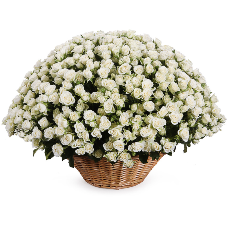 Букет из 101 белой кустовой розы в корзине