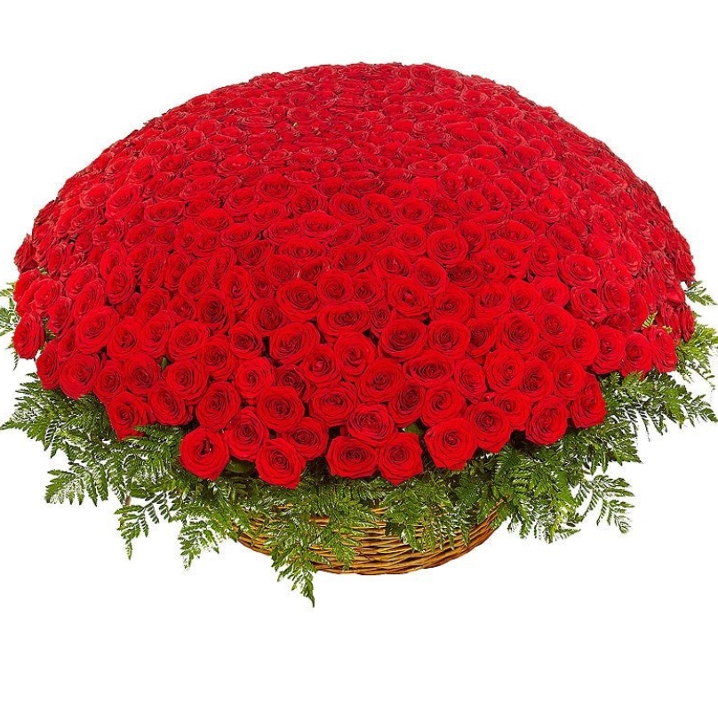 Корзина из 501 красной розы с зеленью